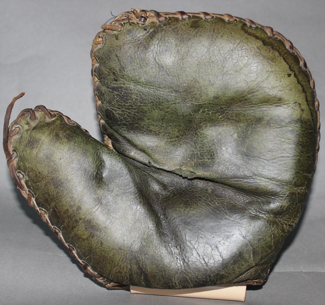 This circa 1920 Rawlings mitt brought $258 at auction. Interesting green leather. Nice patch.
