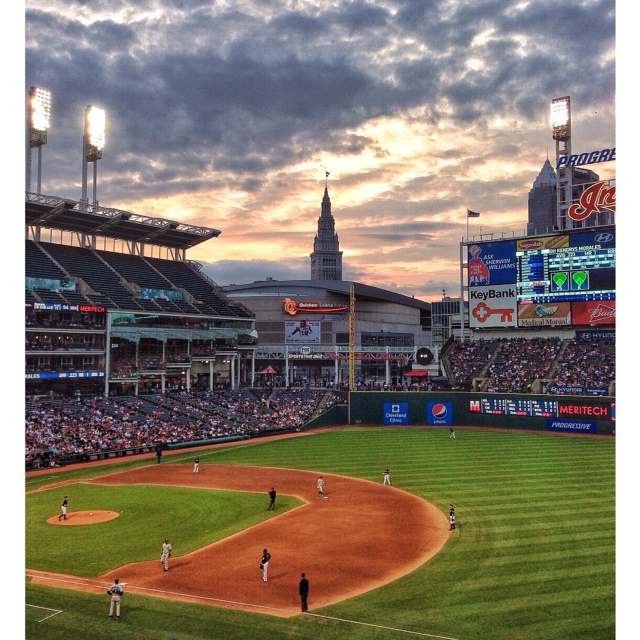 After our setup day Tuesday, which was pretty tiring because the union workers have a rule you can't use a cart with more than two wheels, we got to check out a game at Progressive Field. I had never been there before and enjoyed the stadium. We made the decision to get club seats, so for $75 you had all you could eat and some pretty sweet seats on the 1B line. I definitely got my money's worth of food and it was perfect baseball weather - cool and clear. Definitely a great memory from the trip.