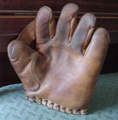 A Goldsmith "Walter Johnson" glove sold for a best offer of $600-650. It is just great looking and in near mint condition. Goldsmith had their top of the line gloves with the Mathewson, Wagner, Johnson endorsement, and also the "Famous Player" JG and RF series which were youth models of the same endorsers. This one is the JG12. The "Spider Web" is cool.