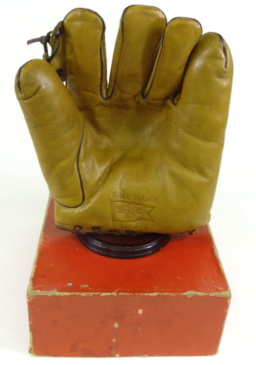 A Pennant brand glove with box sold for $222. Near mint glove with rolled leather piping, grommet web and stellar markings in the pocket. Seems like a bargain for such a high quality item.