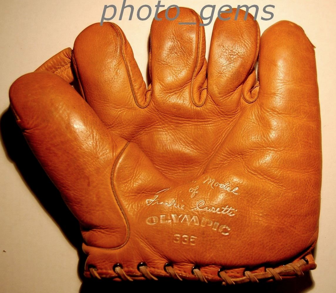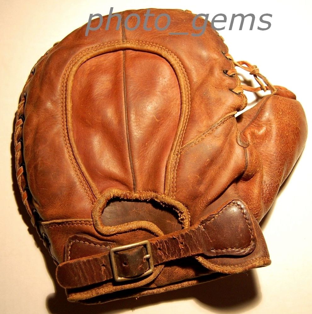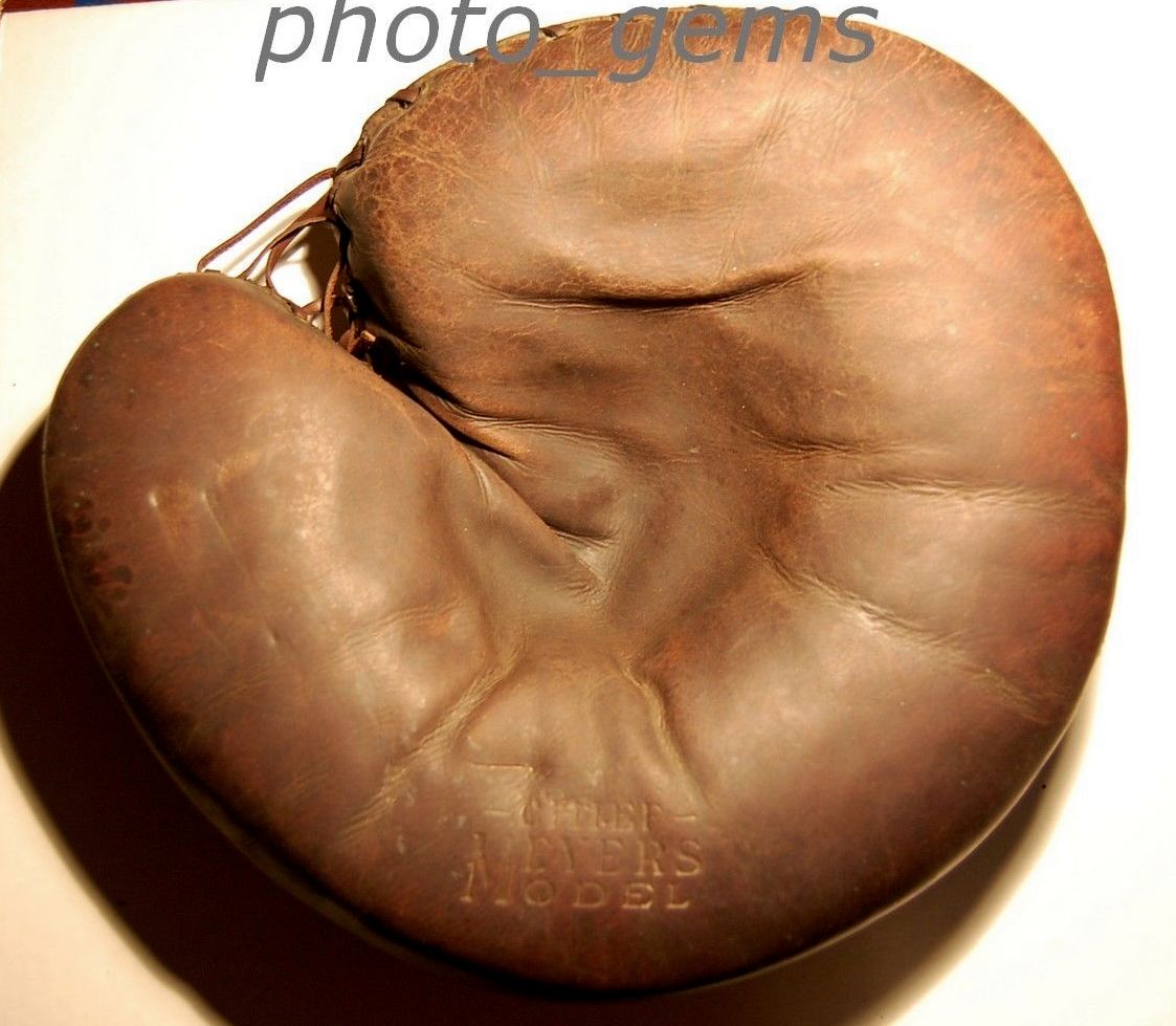 Just a brief word about the Chief Meyers Mitt. I was the winning bidder, coming out of glove collection add-ons hibernation to go after this one. It's a model I've wanted for as long as I've known enough to want it. Maybe 15 years or so. I received it yesterday and it's fine; great strong stamping and original lace. just a really nice example. The thing that I have to mention is that it's much darker than the photos suggest. Much darker. I like it, I'm keeping it, but I could easily see someone else getting really annoyed by the difference in color between the photographs and the actual mitt. It's clear all these seller's gloves had the same brightness to them (as pictured). I would have preferred a more accurate set of photos when considering it as something I wanted to go after. Just sayin'.