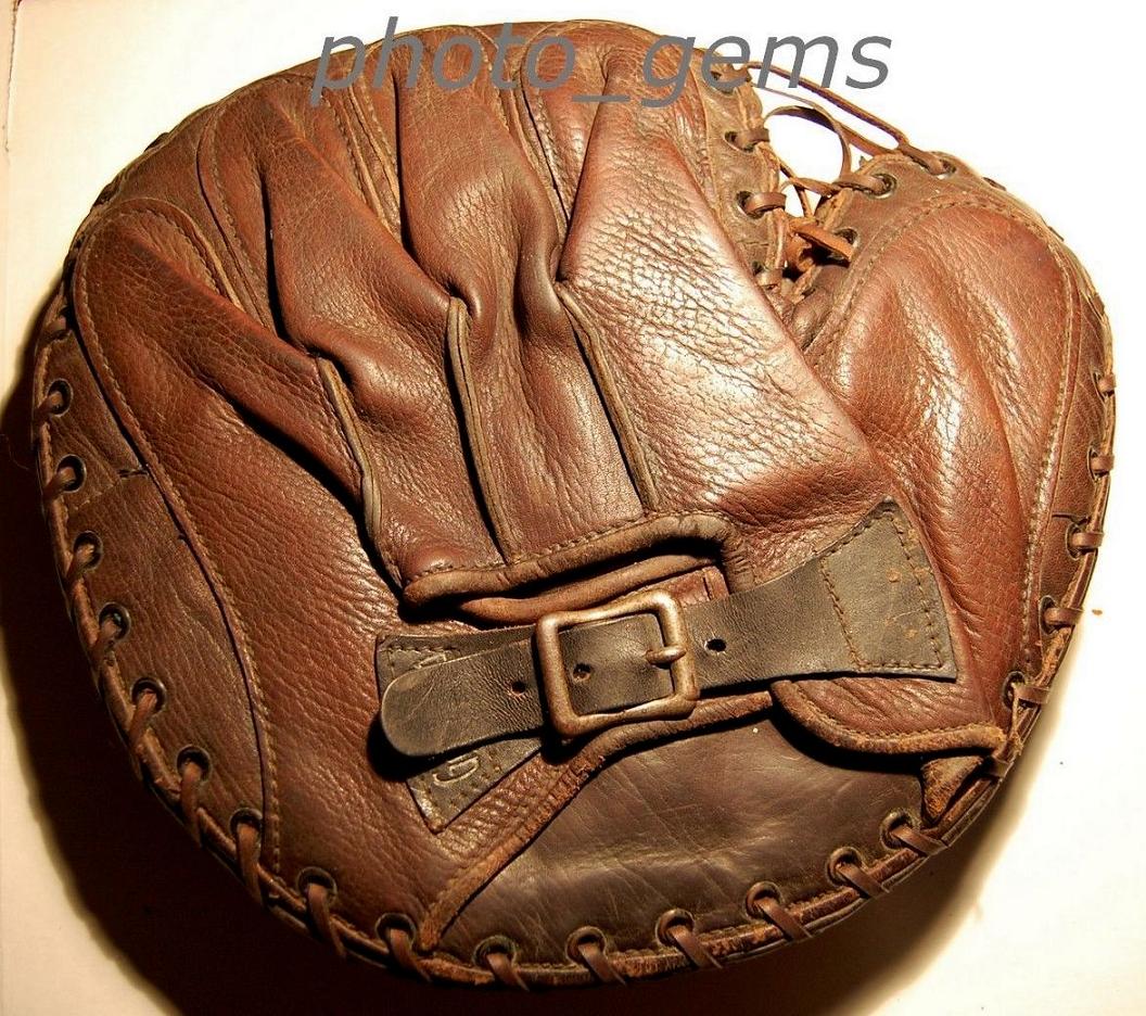 Just a brief word about the Chief Meyers Mitt. I was the winning bidder, coming out of glove collection add-ons hibernation to go after this one. It's a model I've wanted for as long as I've known enough to want it. Maybe 15 years or so. I received it yesterday and it's fine; great strong stamping and original lace. just a really nice example. The thing that I have to mention is that it's much darker than the photos suggest. Much darker. I like it, I'm keeping it, but I could easily see someone else getting really annoyed by the difference in color between the photographs and the actual mitt. It's clear all these seller's gloves had the same brightness to them (as pictured). I would have preferred a more accurate set of photos when considering it as something I wanted to go after. Just sayin'.