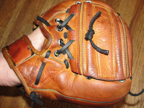 An interesting glove recently sold on ebay. it's a circa 1964 Wilson Al Kaline model A2224. It features finger loops at the beginning of the finger stalls so a player could partially insert his hand and still have control of the glove and thereby increase his fielding range. I couldn't find this model in a catalog. Maybe Derek knows more about this. The glove is a nice one.