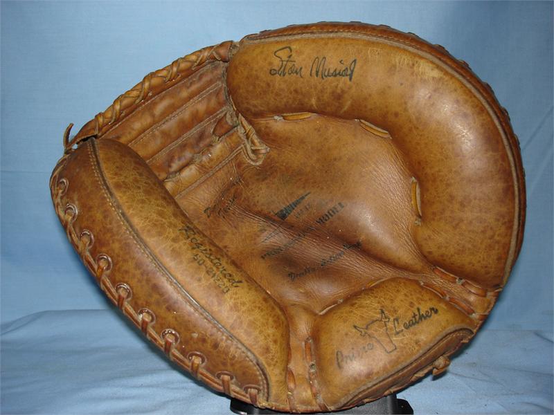 This photo is from a calendar in the 1950's. The glove is a webbed finger model from the 1930-40's.
