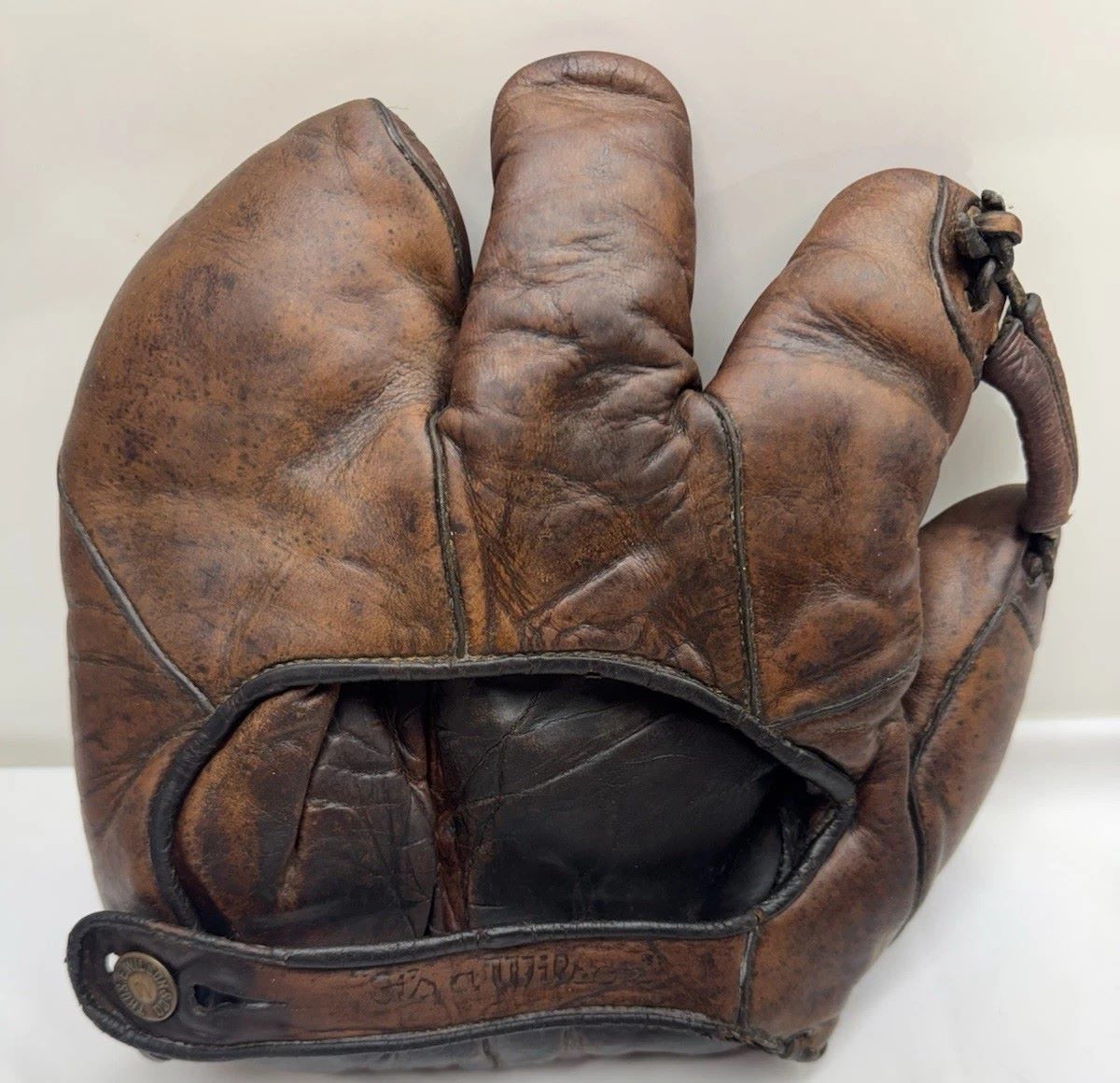 A 1930's Wilson Rogers Hornsby model glove sold for $500. A popular three finger model. It's Well used but still in very nice shape. The Hornsby endorsement is all there but faint.