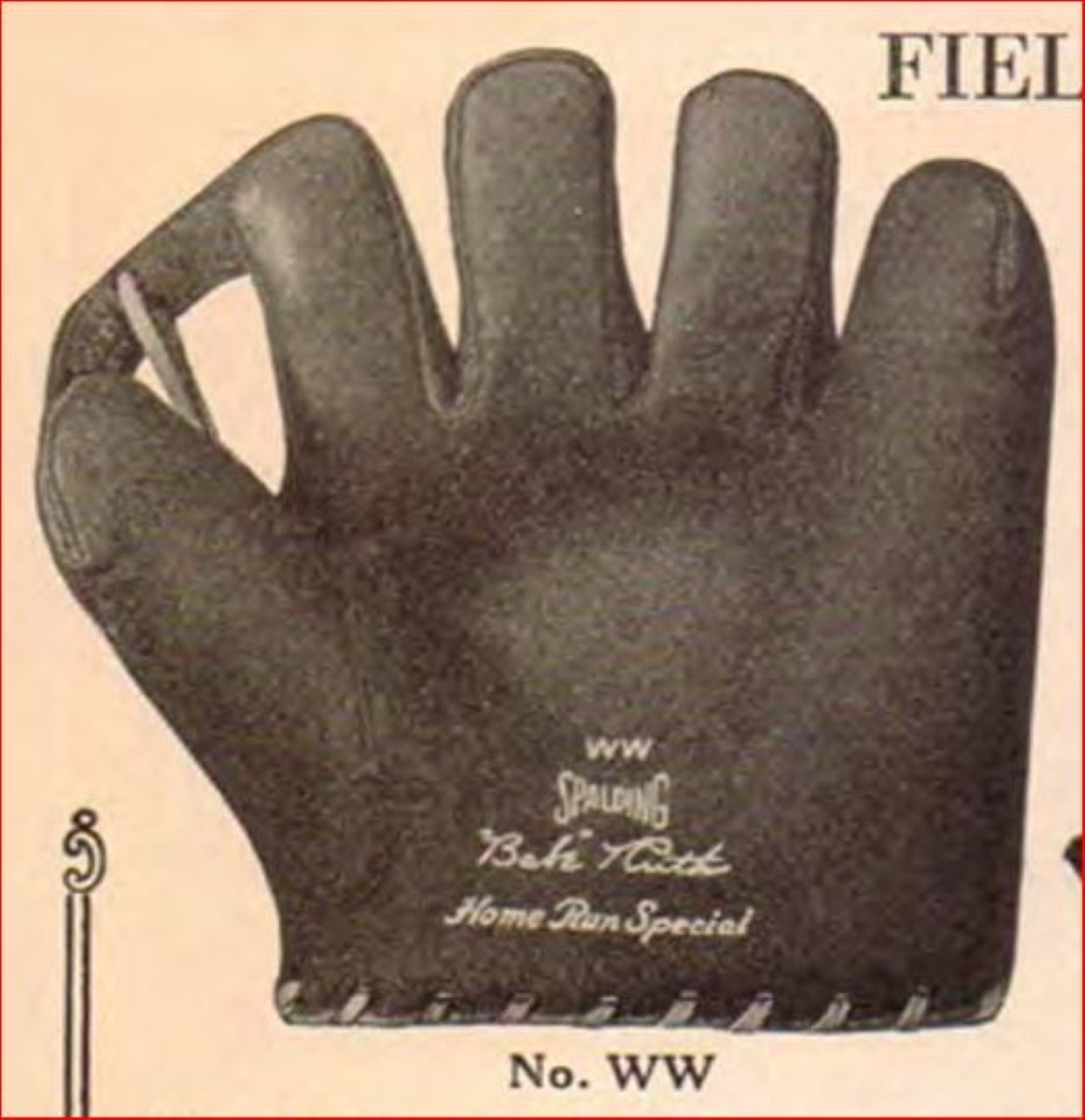 There are other photos of Rogers Hornsby fielding with his signature model Wilson 3-finger on this thread. Somehow he managed to fit that big glove in his back pocket.