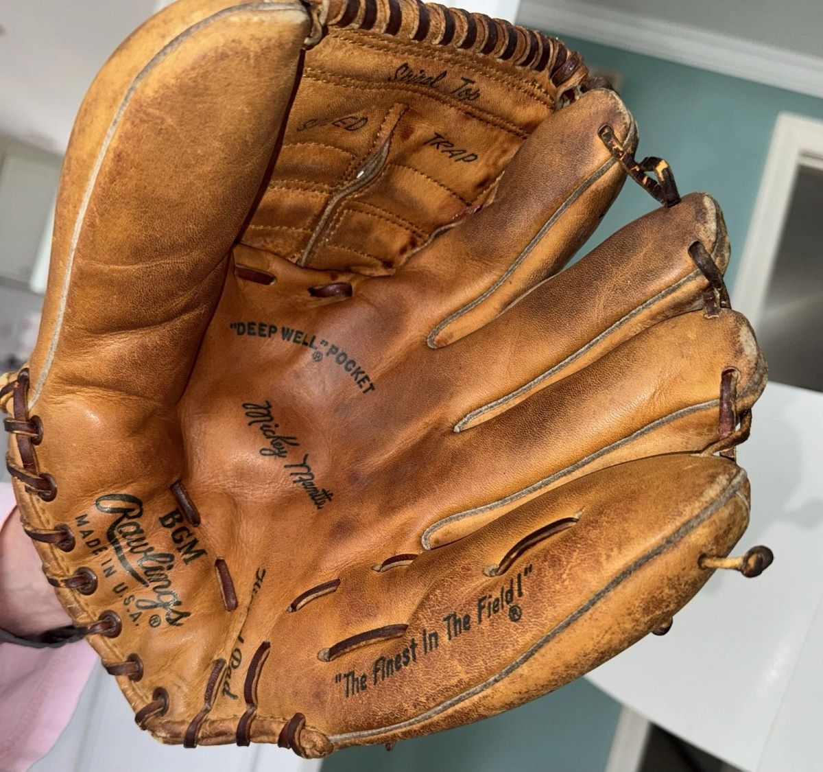 A rare 1963-64 Rawlings Mickey Mantle model BGM glove sold for $35. Made at a time when Rawlings was introducing and promoting their L-heel models. The glove is an interesting combination of the L-heel, one piece face and Speed Trap Web.