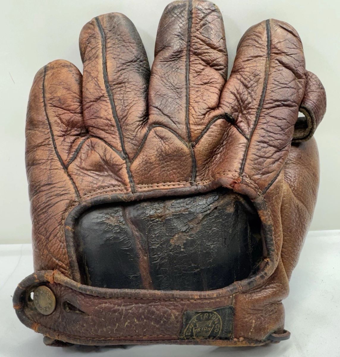 A 1920's Tryon Cy Williams model CW glove sold for $200. Made by KenWel and one of their best. Features the early patent back.