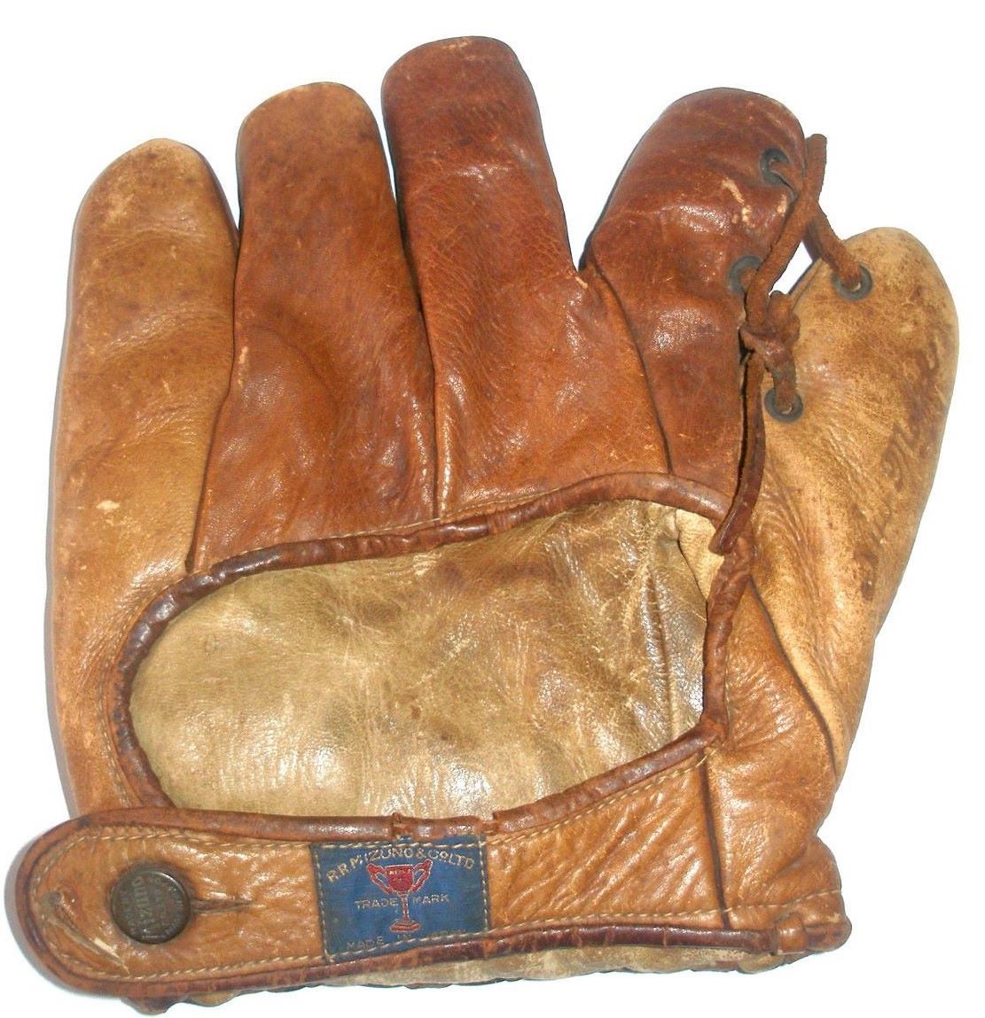 After the war leather hides were hard to come by in Japan so Mizuno made some of their gloves predominately with fabric.
