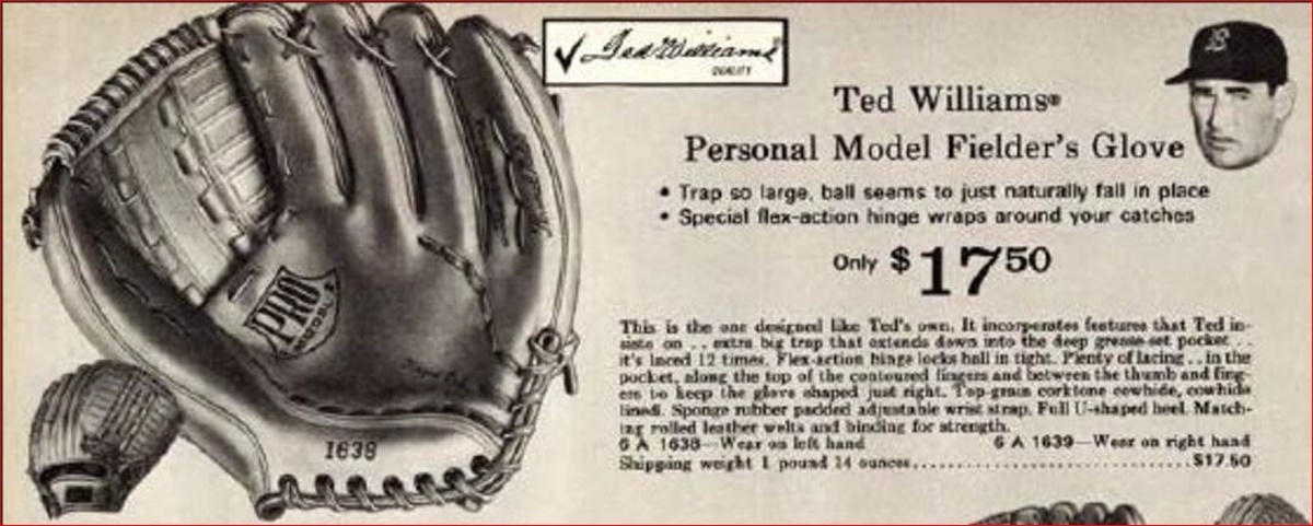 A 1969 Ted Williams Personal model 1638. The glove is reminiscent of the A2000 Wilson models of that time period with the 2 piece palm. Both the 1666 and 1638 model gloves were TOTL for Sears. To give some context, the Wilson A2000 gloves were $45 at the time. The Sears gloves were $17.50.