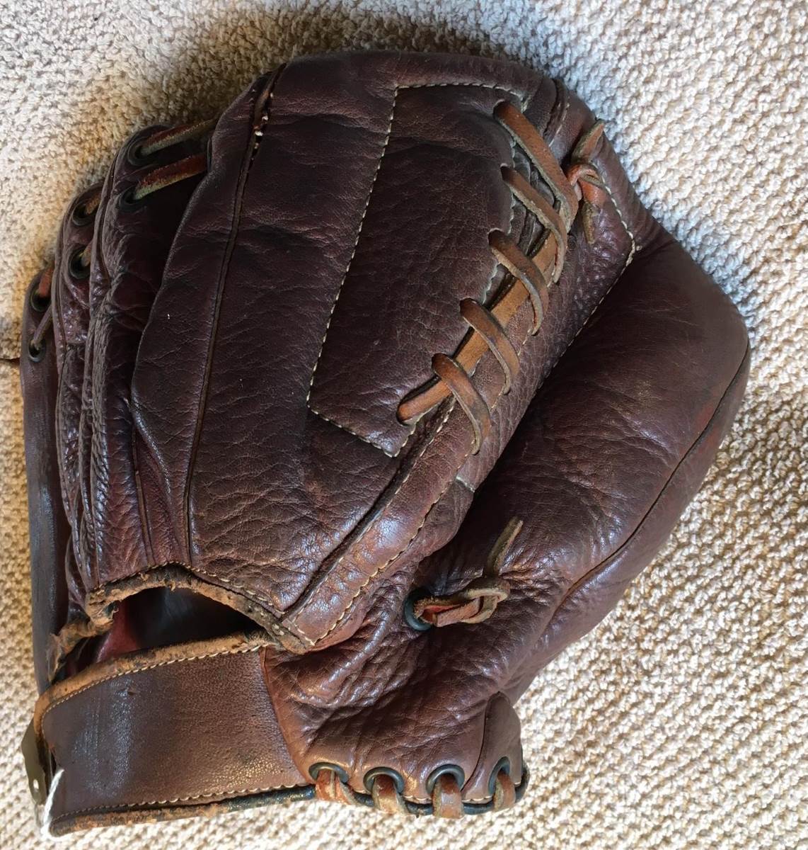A 1967 Ted Williams Personal model 1666. An all leather well built glove. It has a web reminiscent of the Sonnett "Bat Web" Lightning model.