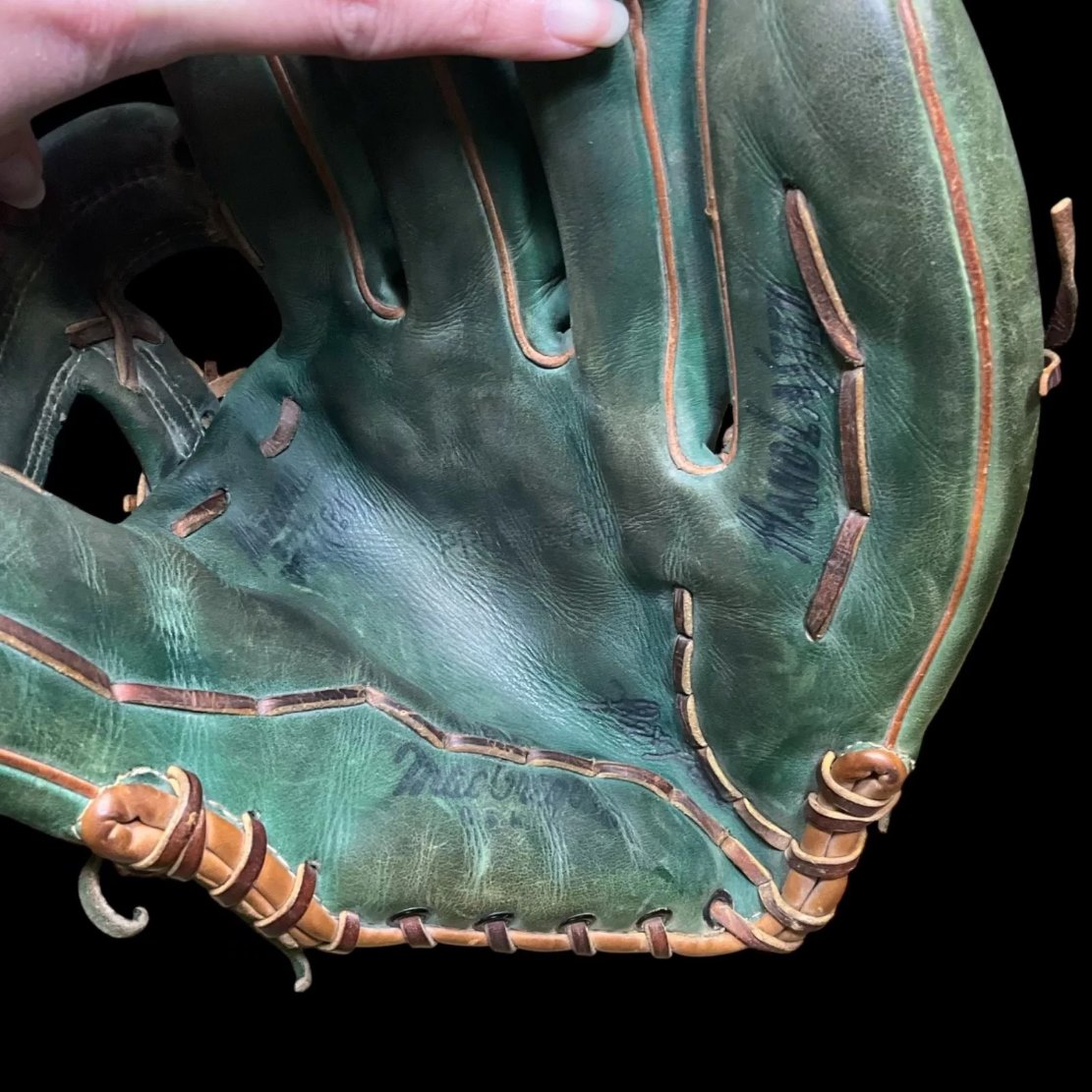 A rare green MacGregor glove sold on ebay for $153. It appears to be unendorsed and stamped "Pro Model". It's made in USA sometime after 1968 since it is missing the Brunswick logo on the patch. I can't quite make out the model number but may be G2_? MacGregor made TOTL colored leather gloves in 1972. At that time the coach of the Miami Hurricanes ordered green gloves for the baseball team from MacGregor. It was part of St. Patricks day celebration and the UM school colors are orange and green. I wonder if the ebay glove was one of those.