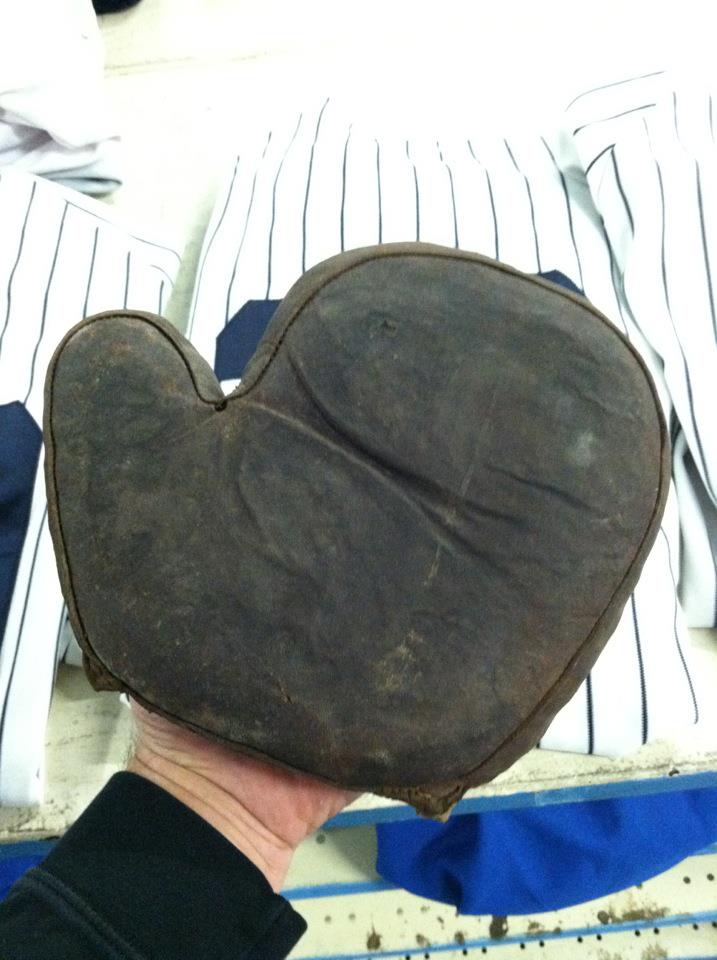 that is a nice old mitt, definitely a keeper with the hook and grommet back. Looks to be in good shape. if that is your first find, you did well. The Decker Safety mitt is shown in this illustration from an A.G. Spalding ad from the 1890's. The back view is at far right. The extra layer of leather and edge band on top of the finger stalls was invented by Harry Decker in 1889 for protection of catchers fingers.