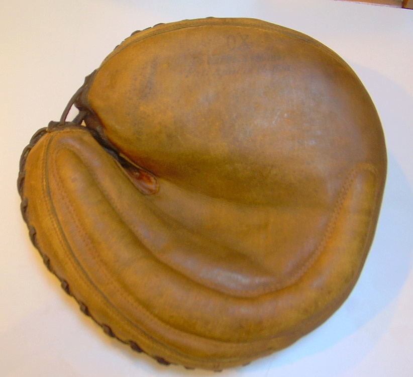 A recent find. A circa 1905 Spalding model OX catchers mitt. I owned a similar one years ago without any of the markings visible on the face. This one has the patent stamp on the finger guard and three patent stamps on the face. I am pretty stoked.