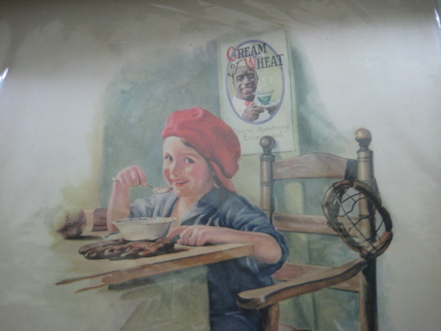 The baseball looks to be handmade and made out of a canvas type material. The Cream of Wheat ad came out of a Lady's Home Journal Magazine from 1923.