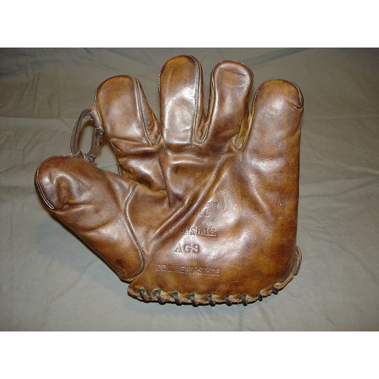 Falls right on the pre war cut one of my all time favorites. This glove has it all rare model, unique design and hall of fame endorsement the only minus is the ink on the wrist strap.