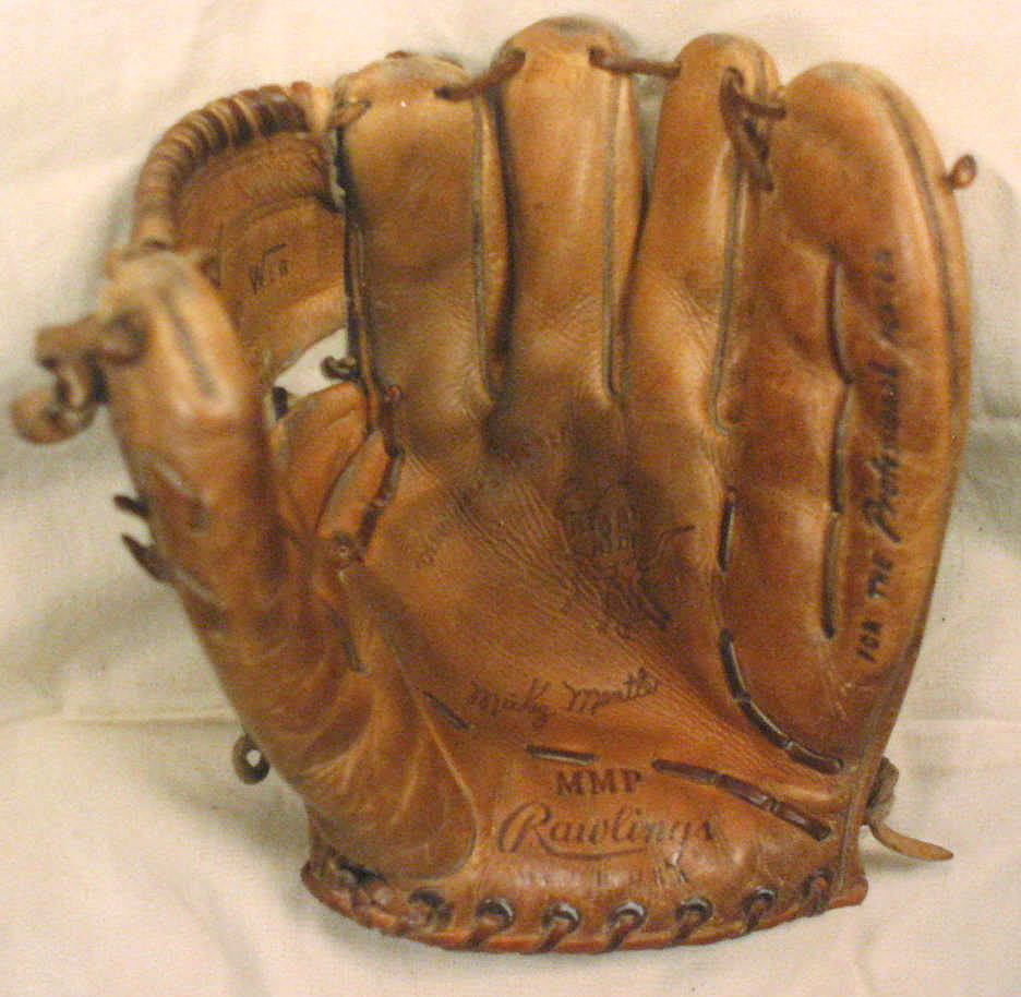Hello everyone! Haven't posted in a really long time, mostly because we haven't been as active in the hobby. Hope everyone is doing well. We recently picked up these two gloves from a local gentleman. As many of you know, who know dad & I, we have always collected mainly 1" webs & full webs and usually shy away from the "newer" stuff. With that being said we went out of our normal realm when we purchased these two gloves. The first glove is a 1961 Rawlings Mickey Mantle MMP Heart of the Hide model with the original box. The second glove is also a Rawlings Heart of the Hide model TN10 Joe Adcock first baseman's mitt. We don't know too much about either model but from our research and a few emails to fellow collectors it seems the Mantle MMP may be a pretty rare find! If anyone is interested in either glove or can provide a little more information to us about them feel free to email us at Bravosin99@aol.com. Thanks, Josh & Tom