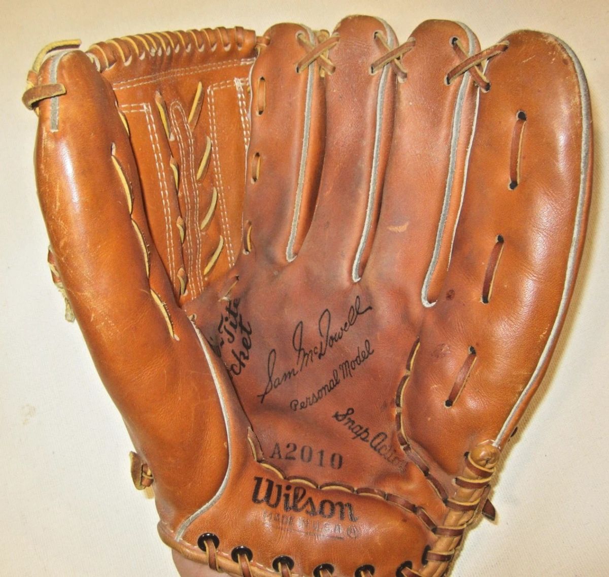 A rare 1920's double buckle Winchester base mitt sold for $499. It has a fair amount of wear but looks all intact.
