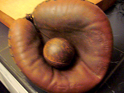 First is the 1940's Hutch "Ken Odea" model catchers mitt. deep stampings in the pocket. Nice patina to the leather. Close to top of the line qulaity. $25