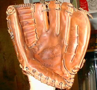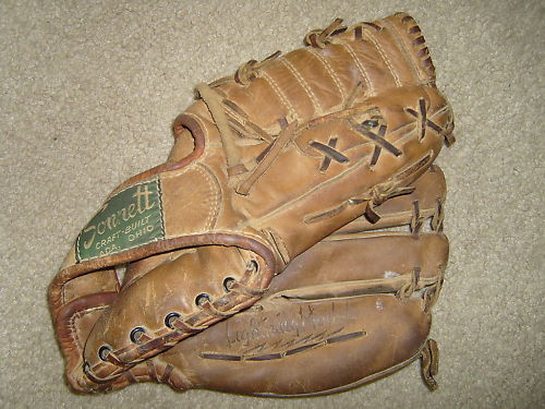The third glove is not near mint but pretty cool looking. A 1960's Sonnett "Lightning" model that sold for $81. Love all the X lacing on the "Bat Web"