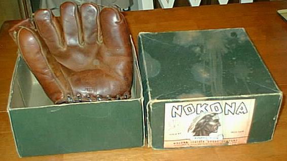 Another glove and box from batsandmitts. This one is a Nokona "George Dockins" model J112 that sold for $150 on ebay.
