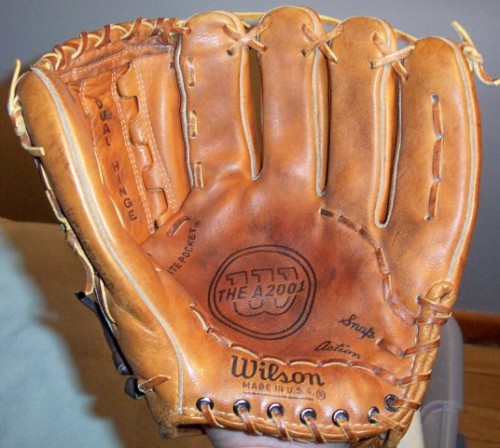 A super mid 1960's Wilson A2001 glove sold for $155 on ebay. As well designed a glove as one will ever find in that time period. The X lacing anchoring the web reminds me of the Sonnett "Bat Web"