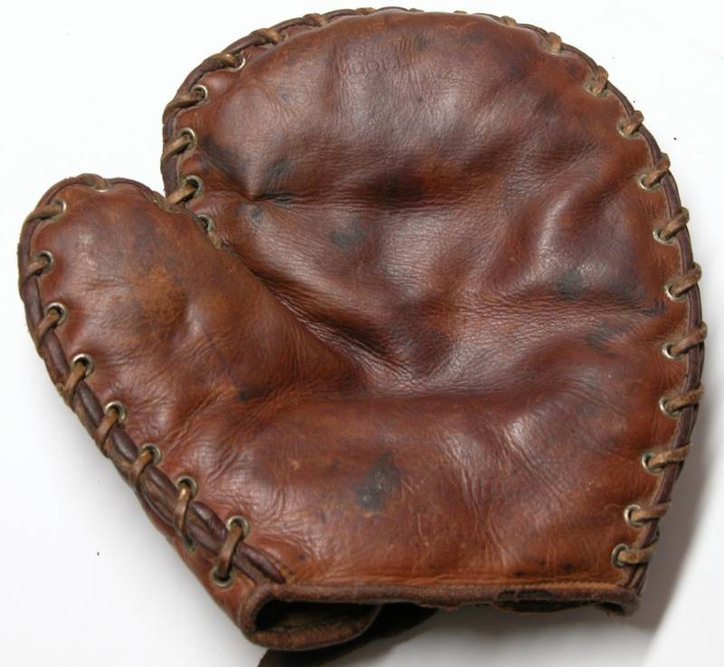 A 1900's Spalding crescent pad glove sold for $1800 on ebay. In decent shape with the seams, stitching and lining intact.