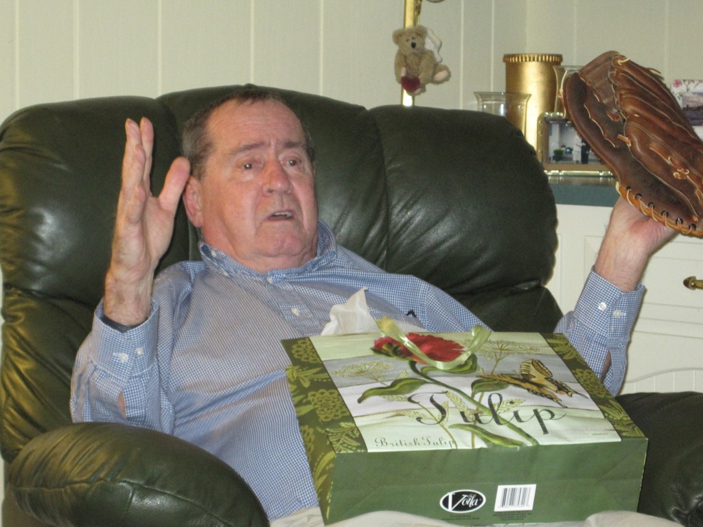 I just wanted to post an update on my search. Thanks to a previous post by someone for an A2000 on Ebay -- my 2 year search/project is over. I won the glove on Ebay and sent to Earl Malone for repair and finally gave the gift to my father. His reaction is all in the photos. Thank you so much for your help.