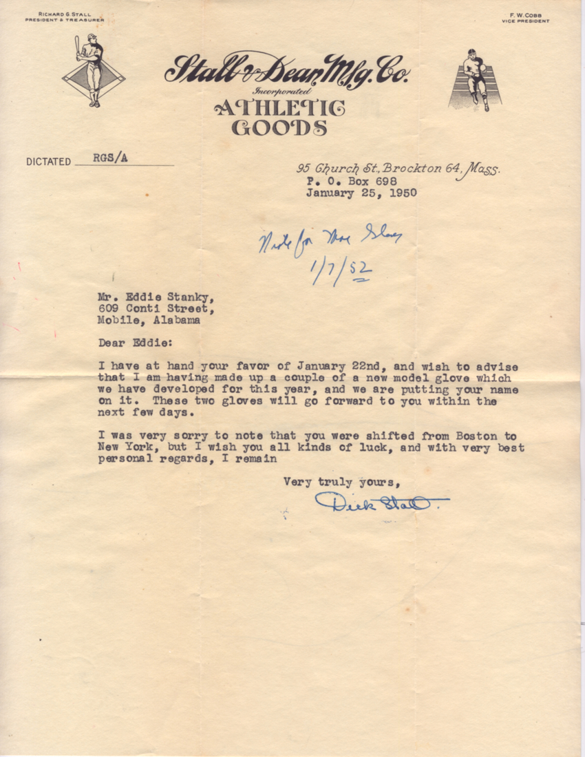 FS: Eddie Stanky gloves with letters from companies