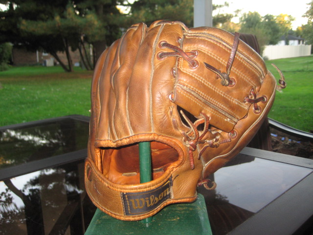 2.) Ernie Banks Wilson A-2210 Ball Hawk Feels great on your hand, great patch, endorsement strong, no ink or holes-$50