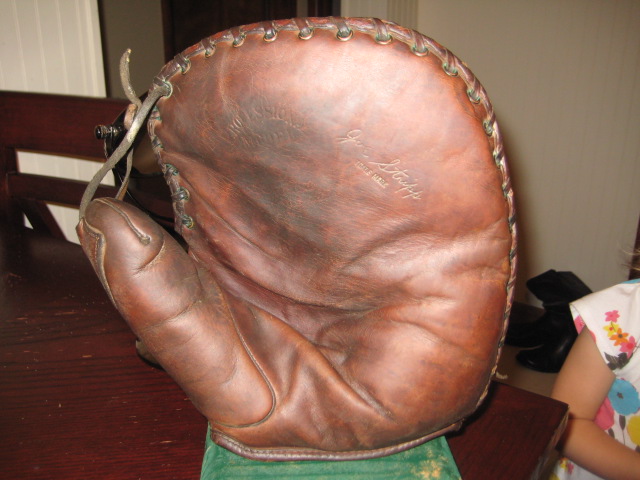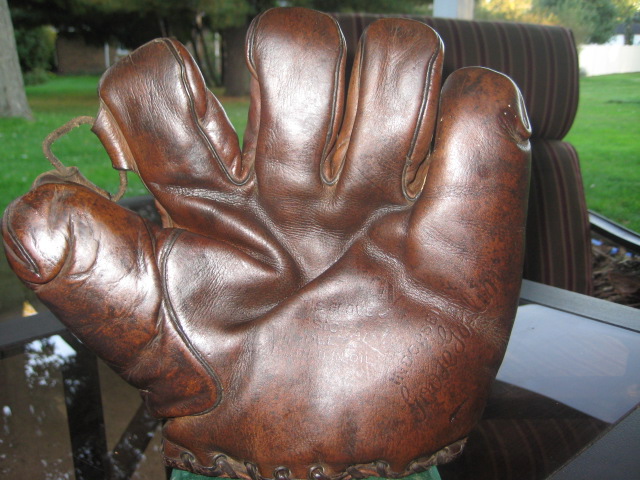 7.) Frank Grube Decker patent catcher glove. Mitt is in great condition inside and out. Stampings a little faint but endorsement is very readable-$100