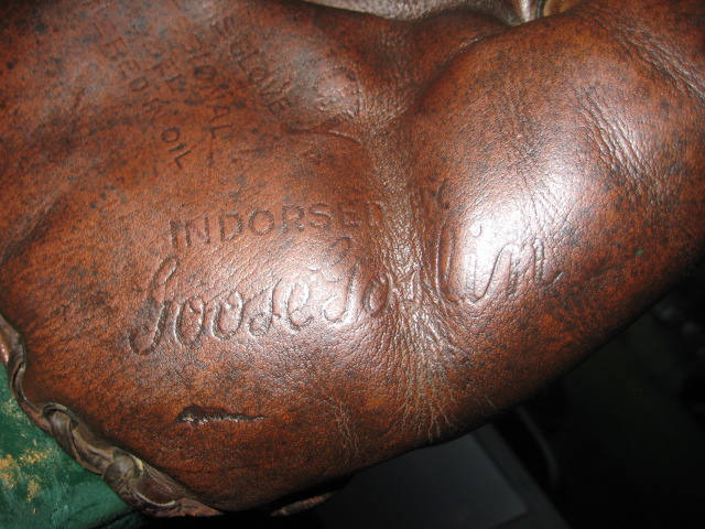 6.)Goose Goslin Tri-Play Extremely large endorsement, tunnel loop web lace is broken, glove feels great on the hand-$100
