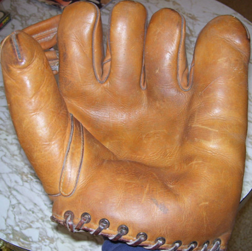 bubbared had some interesting finds lately. here are a couple. first is a nice "Marty Callaghan" model buckleback glove that sold for $78 on ebay. I owned this model years ago and loved the intricate webbing and back panel.